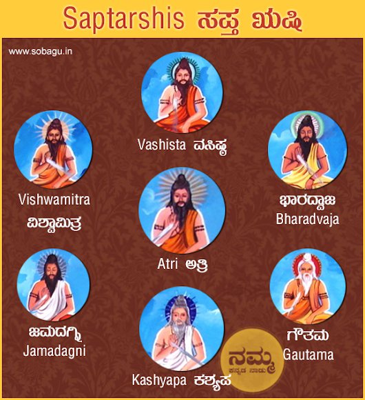 As the ‘Vishnu Purana’ proclaims: ‘When Brahma wished to populate the World, he created mind-born sons, like himself; viz. Bhrigu, Pulastya, Pulaha, Kratu, Angiras, Marichi, Daksha, Atri and Vasistha : these are the nine Brahmas or Brahma-rishis celebrated in the Puranas.’ Originally only seven are mentioned in the MAHABHARATA. These seven are supposed to be visible in the Great Bear, as their wives shine in the Pleiades. These Brahmarishis are also called Prajapatis (Lords of Offspring), Brahmaputras (Sons of Brahma) and Brahmanas.